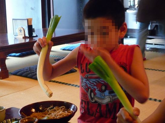 ネギそばを食べるチビくんのリアクションがいいね!(^▽^)