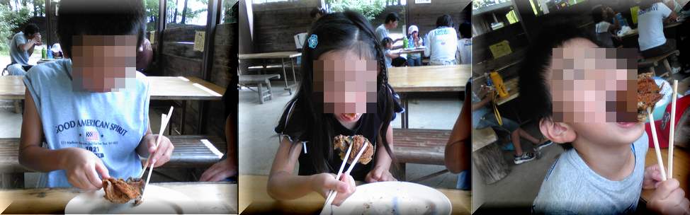 先週末娘が通っている体操教室の夏合宿があって、初めて親元を離れてお泊りしたの。民宿に泊まって、川遊びや魚つかみ、夜はみんなでキャンプファイヤーをしたり、とても楽しかったみたい!