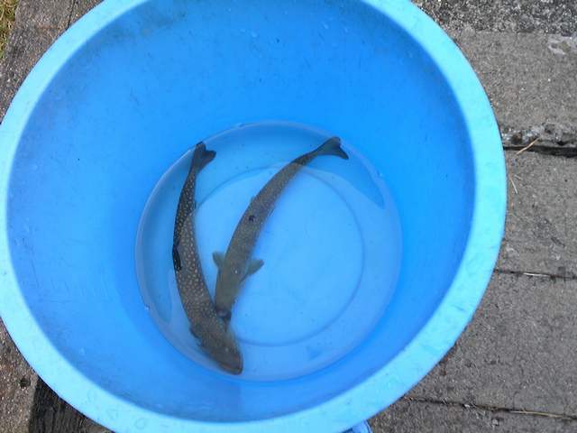 ニジマスの池とイワナ・ヤマメの池がありました。