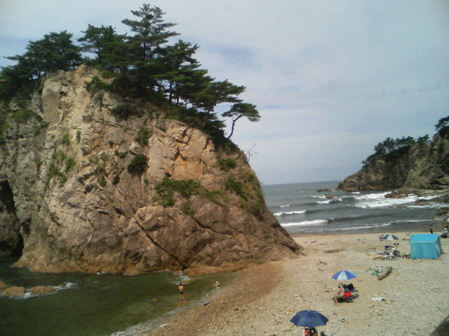 この入り江は眼鏡岩を挟んで左右に浜があり、