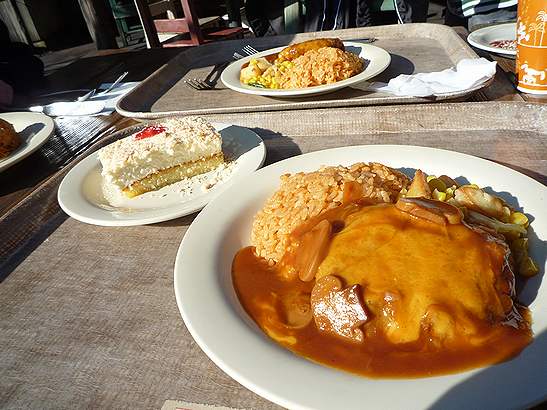 "朝は和食派"の夫も、オチェではわしわし食べてました。