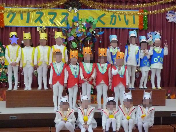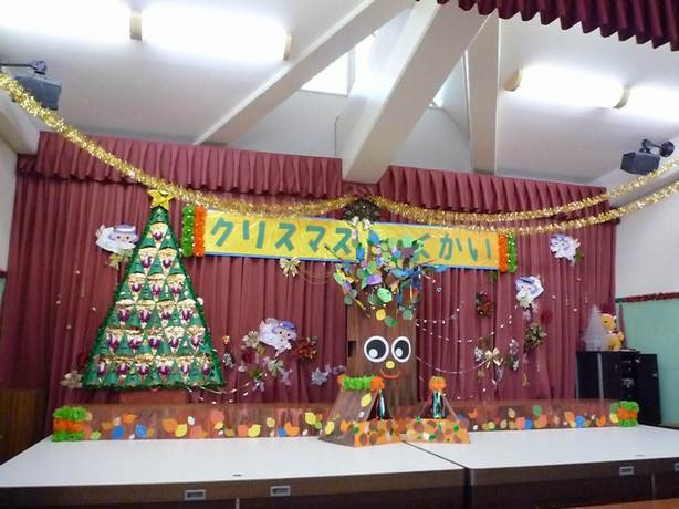お遊戯室は本番のクリスマス祝会を再現しているような