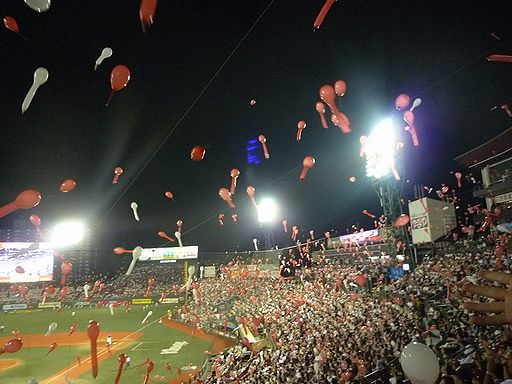 球場で