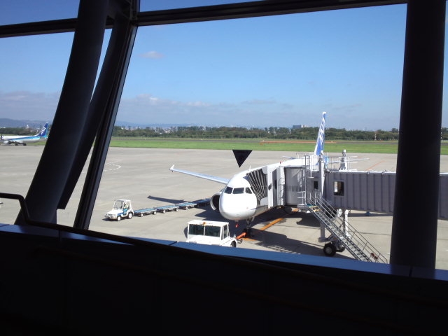 経由便は朝早い出発で、伊丹で乗継1時間あっても