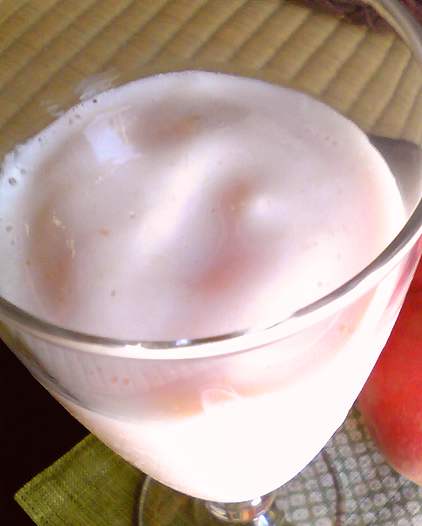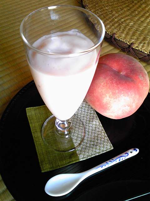 (3)凍った桃と牛乳を1.5:1の割合で